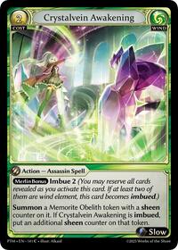Summon a Memorite Obelith token with a sheen counter on it. If Crystalvein Awakening is imbued, put an additional sheen counter on that token.