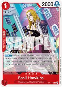 [On K.O.] Look at 5 cards from the top of your deck; play up to 1 {Supernovas} type Character card with 2000 power or less other than [Basil Hawkins]. Then, place the rest at the bottom of your deck in any order.