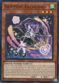 Description: You can target any number of face-up monsters on the field, and declare 1 Type or Attribute; they become that Type or Attribute. If a monster(s) is Special Summoned to your opponent's field, while this card is in your Monster Zone (except during the Damage Step): You can target 1 monster on each field with the same Type and Attribute from each other; return them to the hand. You can only use each effect of "Shipping Archfiend" once per turn.