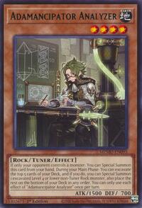 Description: If only your opponent controls a monster: You can Special Summon this card from your hand. During your Main Phase: You can excavate the top 5 cards of your Deck, and if you do, you can Special Summon 1 excavated Level 4 or lower non-Tuner Rock monster, also place the rest on the bottom of your Deck in any order. You can only use each effect of "Adamancipator Analyzer" once per turn.