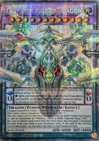 This face-down card in the Extra Deck must first be either Fusion Summoned, or Special Summoned by Tributing 1 Level 12 DARK "Supreme King Z-ARC". If this card is Special Summoned from the Extra Deck: You can place 1 Pendulum Monster from your Deck in your Pendulum Zone. If this card in the Monster Zone is destroyed: You can place this card in your Pendulum Zone.