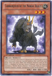 Description: When a monster you control is destroyed by battle and sent to the Graveyard, you can Special Summon this card from your hand. Once per turn, when this Defense Position card is changed to face-up Attack Position, you can Special Summon 1 "Nordic Beast" monster from your Deck, except "Tanngnjostr of the Nordic Beasts".