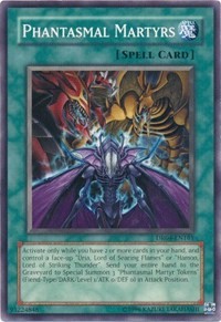 Description: You can only activate this card while you have 2 or more cards in your hand, and have either Uria, Lord of Searing Flames or Hamon, Lord of Striking Thunder face-up on your side of the field. By sending your entire hand to the Graveyard, Special Summon 3 Phantasmal Martyr Tokens (Fiend-Type/DARK/Level 1/ATK 0/DEF 0) in Attack Position on your side of the field.