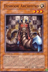 Description: The controller of this card pays 500 Life Points during each of his/her Standby Phase (this is not optional). When this card is specifically designated as a target of the effect of a card controlled by your opponent, when resolving the effect, roll a six-sided die. If the result is 3, negate the effect and destroy the opponent''s card. When a Terrorking Archfiend on your side of the field is destroyed and sent to the Graveyard, you can sent this card from your hand to the Graveyard to Special Summon the Terrorking Archfiend.