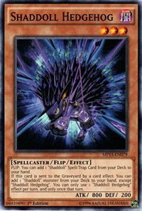 If this card is sent to the Graveyard by a card effect: You can add 1 "Shaddoll" monster from your Deck to your hand, except "Shaddoll Hedgehog". You can only use 1 "Shaddoll Hedgehog" effect per turn, and only once that turn.