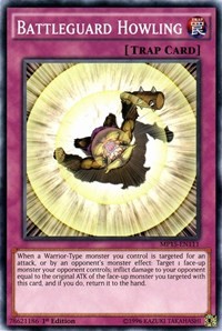 Description: When a Warrior-Type monster you control is targeted for an attack, or by an opponent''s monster effect: Target 1 face-up monster your opponent controls; inflict damage to your opponent equal to the original ATK of the face-up monster you targeted with this card, and if you do, return it to the hand.