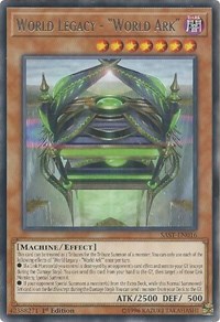 Description: This card can be treated as 2 Tributes for the Tribute Summon of a monster. You can only use each of the following effects of "World Legacy - "World Ark"" once per turn.