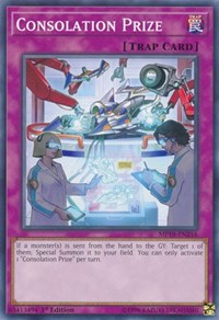 If a monster(s) is sent from the hand to the GY: Target 1 of them; Special Summon it to your field. You can only activate 1 "Consolation Prize" per turn.
