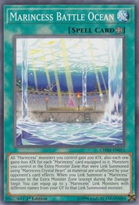 Description: All "Marincess" monsters you control gain 200 ATK, also each one gains 600 ATK for each "Marincess" card equipped to it. Monsters you control in the Extra Monster Zone that were Link Summoned using "Marincess Crystal Heart" as material are unaffected by your opponent's card effects. When you Link Summon a "Marincess" monster to the Extra Monster Zone (except during the Damage Step): You can equip up to 3 "Marincess" Link Monsters with different names from your GY to that Link Summoned monster.