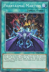 Description: Activate only while you have 2 or more cards in your hand, and control a face-up "Uria, Lord of Searing Flames" or "Hamon, Lord of Striking Thunder". Send your entire hand to the Graveyard to Special Summon 3 "Phantasmal Martyr Tokens" (Fiend-Type/DARK/Level 1/ATK 0/DEF 0) in Attack Position.