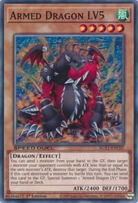 Description: Send 1 Monster Card from your hand to the Graveyard to destroy 1 face-up monster on your opponent''s side of the field with an ATK equal to or less than the ATK of the sent monster. During the End Phase of a turn that this card destroyed a monster as a result of battle, send this card to the Graveyard to Special Summon 1 Armed Dragon LV7 from your hand or Deck.