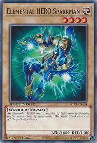 An Elemental Hero and a warrior of light who proficiently wields many kinds of armaments. His Shining Surge Flash cuts off the path of villainy.