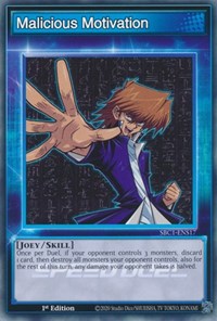 Once per Duel, if your opponent controls 3 monsters, discard 1 card, then destroy all monsters your opponent controls, also for the rest of this turn, any damage your opponent takes is halved.