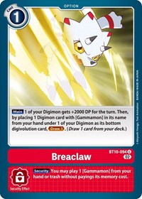 Security Effect: [Security] You may play 1 [Gammamon] from your hand or trash without paying its memory cost.