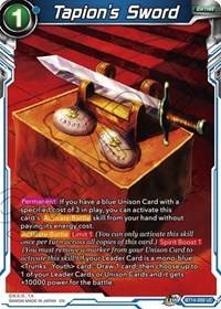 [Activate:Battle] [Limit 1] (You can only activate this skill once per turn across all copies of this card.) [Spirit Boost 1] (You must remove a marker from your Unison Card to activate this skill.) If your Leader Card is a mono-blue "Trunks : Youth" card : Draw 1 card, then choose up to 1 of your Leader Cards or Unison Cards and it gets +10000 power for the battle.