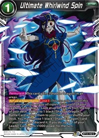 [Activate:Main/Battle] [Limit 1] (You can only activate this skill once per turn across all copies of this card.) If your Leader Card is black : Look at up to 5 cards from the top of your deck, add up to 1 black "Shadow Dragon" Battle Card among them to your hand, then shuffle your deck. You may choose 1 black "Shadow Dragon" card in your hand and discard it. If you do, up to 1 of your Leader Cards gets +1000 power for the turn.