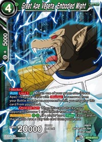 [Auto] [Limit 1] G : When one of your green non-"Great Ape" "Vegeta" cards with [Blocker] is removed from your Battle Area by an opponent's skill, you may play this card from your hand.