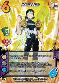 Description: Response: After your attack is partially blocked, draw 2 cards. Response [Once per game]: After an attack is completely blocked, your rival reveals their hand. Choose 1 card in their hand and discard it. Enhance: Change the zone of your attack.