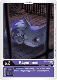 [On Deletion] By trashing 1 card in your hand, delet 1 of your opponent's level 3 Digimon.