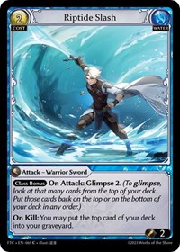 Description: [Class Bonus] On Attack: Glimpse 2. (To glimpse, look at that many cards from the top of your deck. Put those cards back on the top or on the bottom of your deck in any order.)