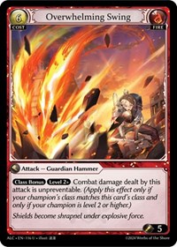 Description: [Class Bonus] [Level 2+] Combat damage dealt by this attack is unpreventable. (Apply this effect only if your champion's class matches this card's class and only if your champion is level 2 or higher.)