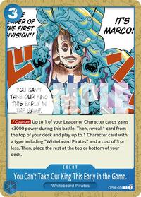 Description: [Counter] Up to 1 of your Leader or Character cards gains +3000 power during this battle. Then, reveal 1 card from the top of your deck and play up to 1 Character card with a type including "Whitebeard Piratess" and a cost of 3 or less. Then, place the rest at the top or bottom of your deck.