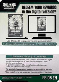 Description: This listing is not a physical item. Please keep in mind that this Code Card listing represents a digital copy of the stated item for the Dragon Ball Super Fusion World Digital Card Game. You may receive the physical Code Card. Upon purchase, please work with your specific Seller by sending them a message using the Contact Seller button on the order details in your Order History to opt in to having your Code Card code delivered digitally due to the nature of the product.