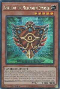 Description: Cannot be destroyed by Spell/Trap effects. You can only use each of the following effects of "Shield of the Millennium Dynasty" once per turn. If this card is in your hand: You can place it in your Spell & Trap Zone as a face-up Continuous Spell. While this card is a Continuous Spell: You can either pay 2000 LP, or reveal 1 "Millennium Ankh" in your hand; Special Summon this card, then you can add 1 "Millennium Ankh" from your Deck to your hand.