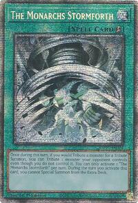 Description: Once during this turn, if you would Tribute a monster for a Tribute Summon, you can Tribute 1 monster your opponent controls even though you do not control it. You can only activate 1 "The Monarchs Stormforth" per turn. During the turn you activate this card, you cannot Special Summon monsters from the Extra Deck.