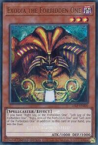 Description: If you have "Right Leg of the Forbidden One", "Left Leg of the Forbidden One", "Right Arm of the Forbidden One" and "Left Arm of the Forbidden One" in addition to this card in your hand, you win the Duel.