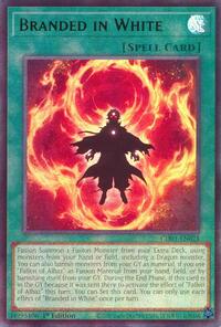 Description: Fusion Summon 1 Fusion Monster from your Extra Deck, using monsters from your hand or field as material, including a Dragon monster. You can also banish monsters from your GY as material, if you use "Fallen of Albaz" as Fusion Material from your hand, field, or by banishing itself from your GY. During the End Phase, if this card is in the GY because it was sent there to activate the effect of "Fallen of Albaz" this turn: You can Set this card. You can only use each effect of "Branded in White" once per turn.