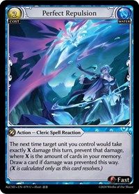 The next time target unit you control would take exactly X damage this turn, prevent that damage, where X is the amount of cards in your memory. Draw a card if damage was prevented this way. (X is calculated only as this card resolves.)