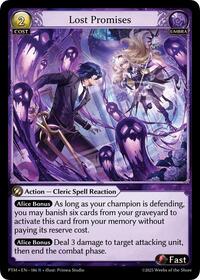 Description: [Alice Bonus] As long as your champion is defending, you may banish six cards from your graveyard to activate this card from your memory without paying its reserve cost.