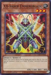 When this card is destroyed by battle and sent to the Graveyard: You can Special Summon 1 Level 4 or lower "X-Saber" monster from your Deck.