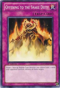 Target 1 face-up Reptile-Type monster you control and 2 cards your opponent controls; destroy all three targets.