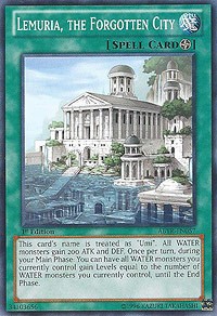 Description: This card's name is treated as "Umi". All WATER monsters gain 200 ATK and DEF. Once per turn, during your Main Phase: You can have all WATER monsters you currently control gain Levels equal to the number of WATER monsters you currently control, until the End Phase.
