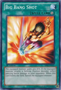 The equipped monster gains 400 ATK. If the equipped monster attacks a Defense Position monster, inflict piercing Battle Damage to your opponent. When this card leaves the field, banish the equipped monster.