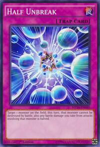 Target 1 monster on the field; this turn, that monster cannot be destroyed by battle, also any battle damage you take from attacks involving that monster is halved.