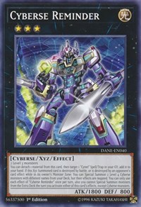You can detach 1 material from this card, then target 1 "Cynet" Spell/Trap in your GY; add it to your hand. If this Xyz Summoned card is destroyed by battle, or is destroyed by an opponent's card effect while in its owner's Monster Zone: You can Special Summon 2 Level 4 Cyberse monsters with different names from your Deck, but their effects are negated. You can only use each effect of "Cyberse Reminder" once per turn, also you cannot Special Summon monsters from the Extra Deck the turn you activate either of this card's effects, except Cyberse monsters.