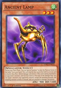 Description: During your Main Phase: You can Special Summon "La Jinn the Mystical Genie of the Lamp" from your hand. This card must be face-up on the field to activate and to resolve this effect. Before damage calculation, if this card is being attacked by an opponent''s monster, and was face-down at the start of the Damage Step: You can target 1 monster your opponent controls, except the attacking monster; the attacking monster attacks it instead, and you proceed to damage calculation.