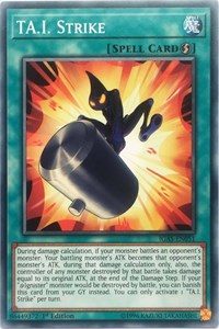 Description: During damage calculation, if your monster battles an opponent's monster: Your battling monster's ATK becomes that opponent's monster's ATK, during that damage calculation only, also, the controller of any monster destroyed by that battle takes damage equal to its original ATK, at the end of the Damage Step. If your "@Ignister" monster would be destroyed by battle, you can banish this card from your GY instead. You can only activate 1 "TA.I. Strike" per turn.